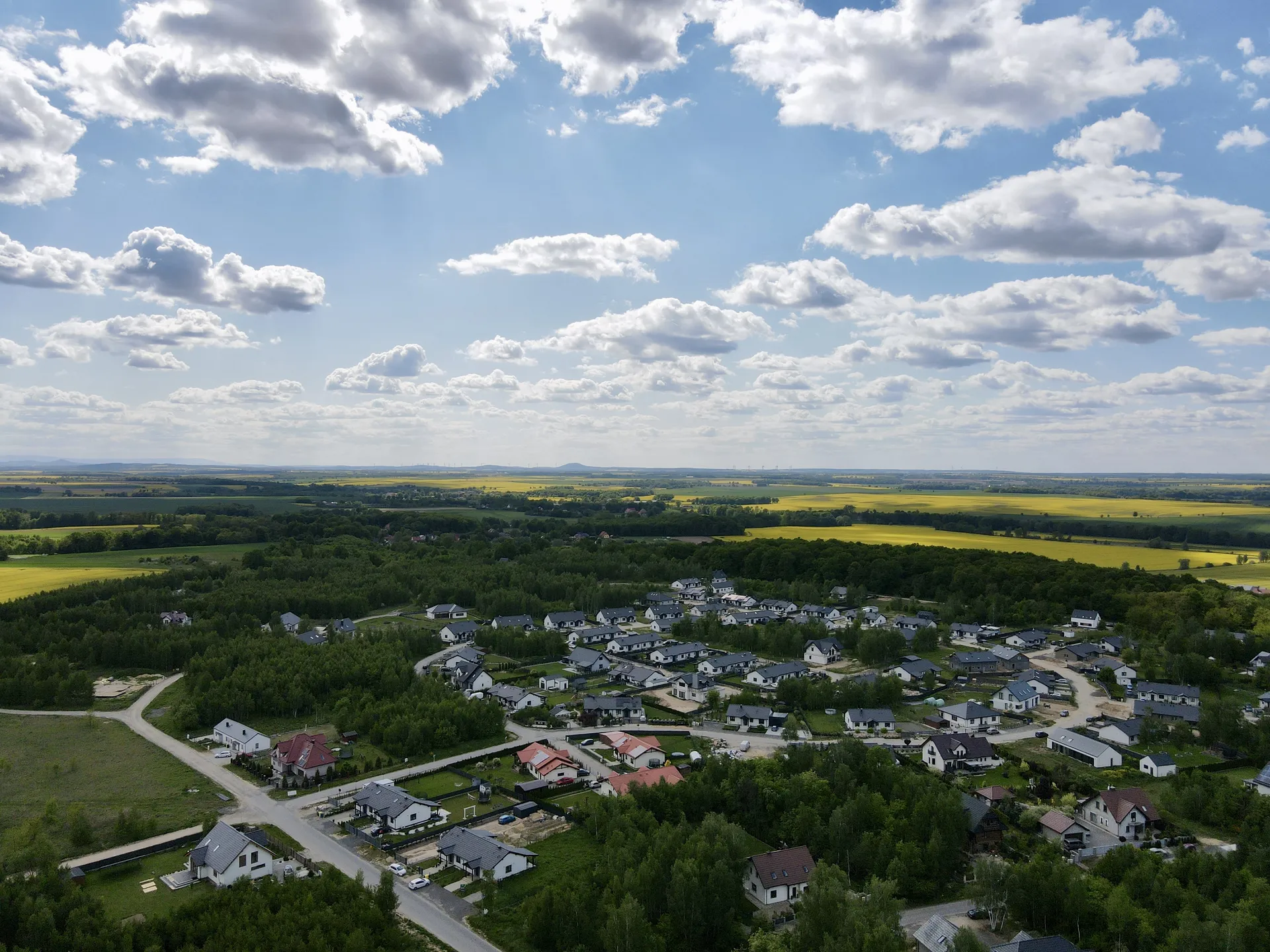 Każdy dom oferuje przestronny ogród, gdzie poranna kawa na tarasie staje się rytuałem pełnym spokoju. Teren osiedla jest ogrodzony i wyposażony w bramę sterowaną pilotem, dzięki czemu poczucie bezpieczeństwa oraz prywatności towarzyszy Ci już od pierwszej chwili.
