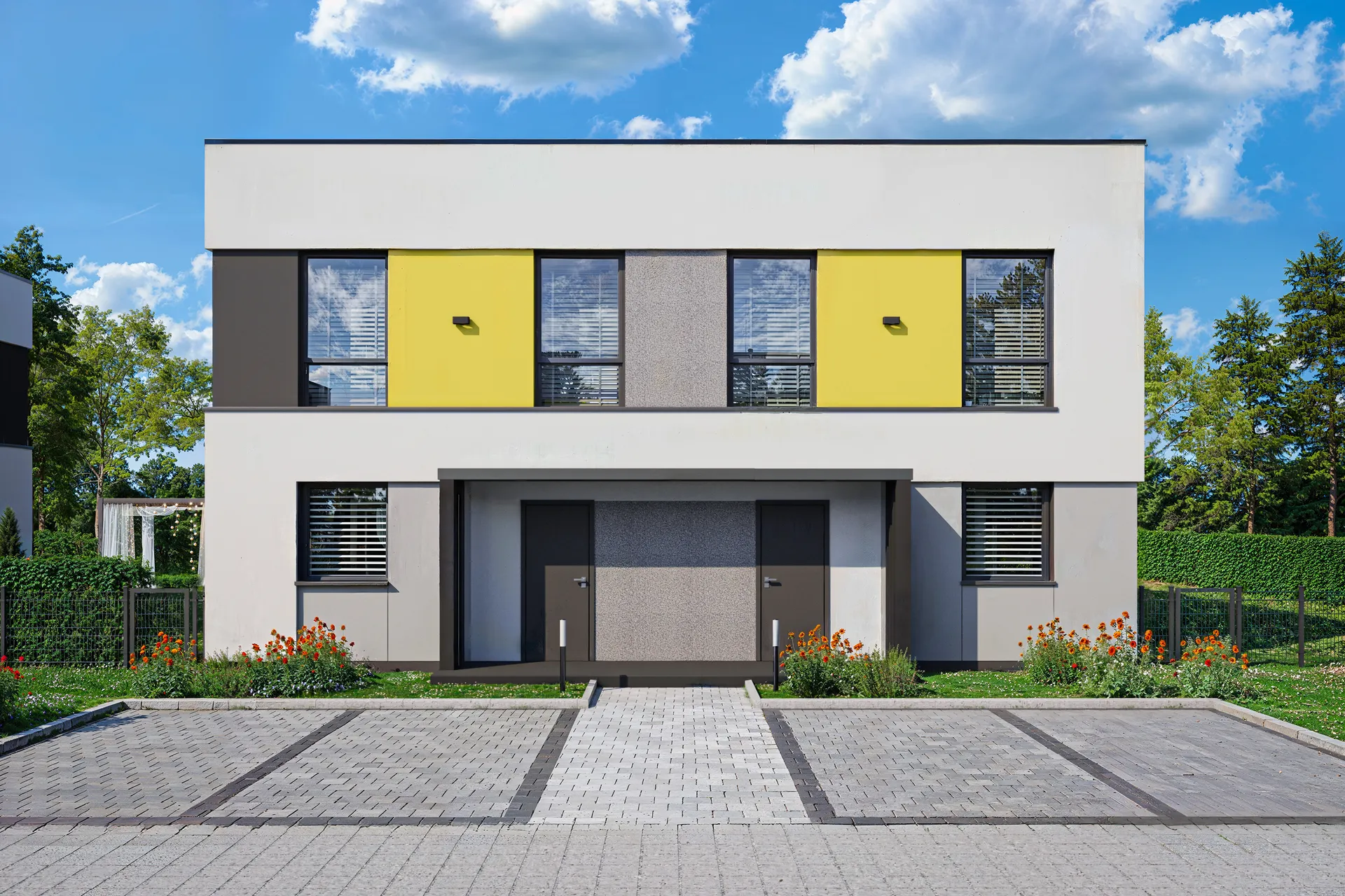 Od pierwszego spojrzenia zauważysz oryginalną bryłę i ciekawe wykończenia. Wysmakowana kompozycja kolorów, linii i detali nadaje budynkowi wyjątkowego charakteru, który przyciąga wzrok i wzbudza zachwyt.