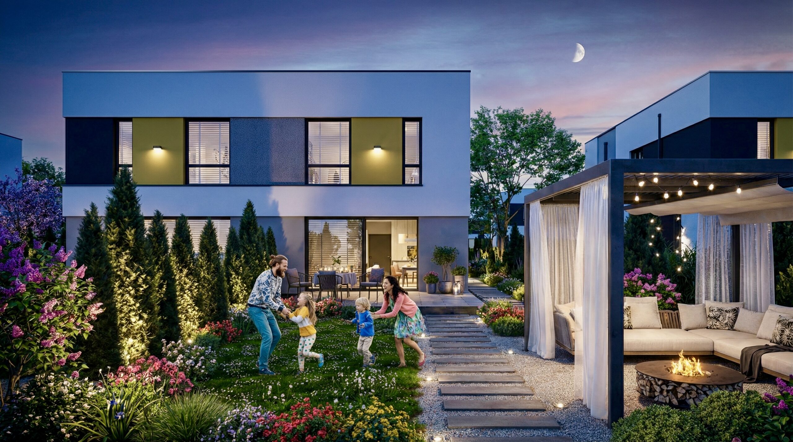 Zamień rodzinny czas w beztroską zabawę, bez troski o ruchliwe ulice. Ten ogród to plenerowe centrum rozrywki: przyjęcia urodzinowe pod gołym niebem, letnie grille, a nawet zwykłe rozmowy przy zachodzie słońca, które jednoczą wszystkich domowników.
